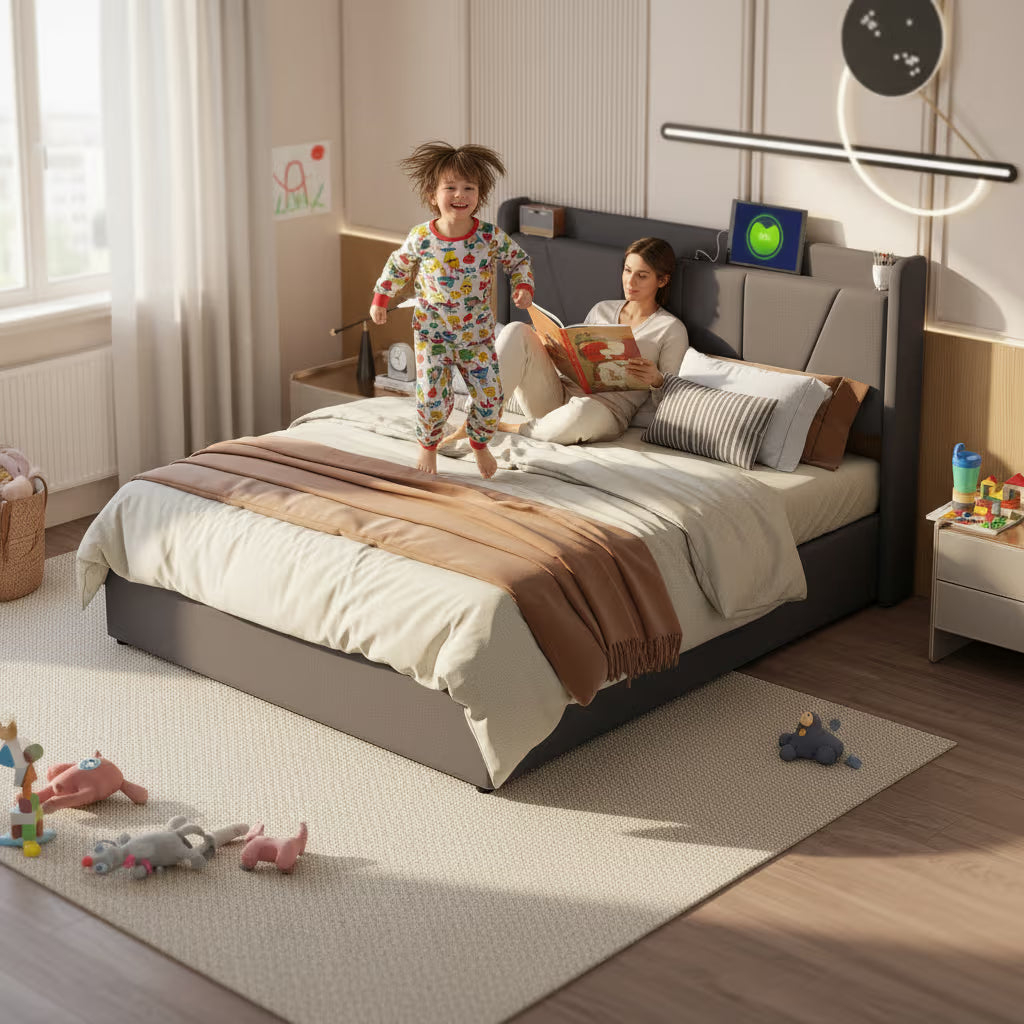 Nos lits sont fabriqués avec des matériaux testés pour un usage quotidien. Le mécanisme du coffre a été testé pour supporter plus de 50 000 ouvertures. Les structures en bois ou MDF offrent solidité et stabilité, pour un produit durable dans le temps.