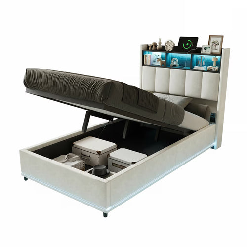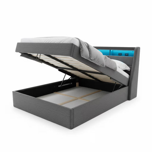 Apportez style et fonctionnalité à votre chambre avec ce lit double 160x200 cm. Son coffre hydraulique offre un espace de rangement pratique pour le linge de lit ou vos affaires, tandis que la tête de lit intègre des bandes LED et un port USB pour un confort moderne et connecté.